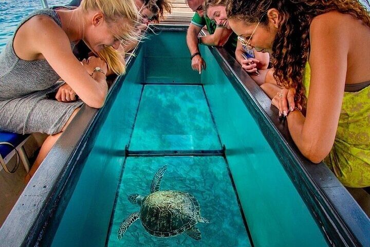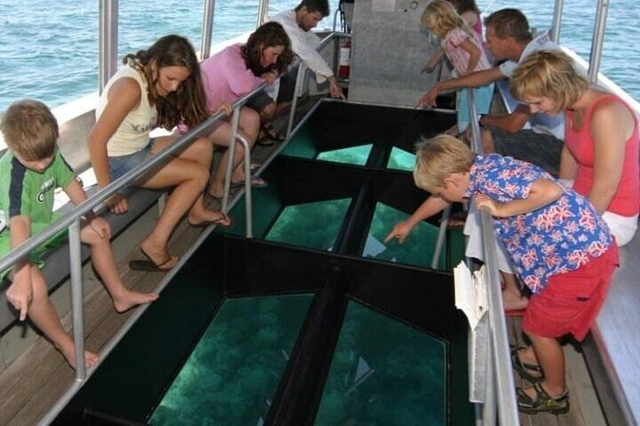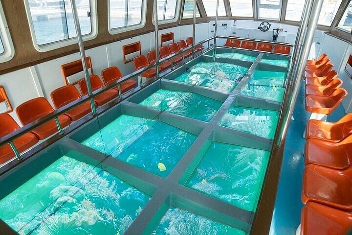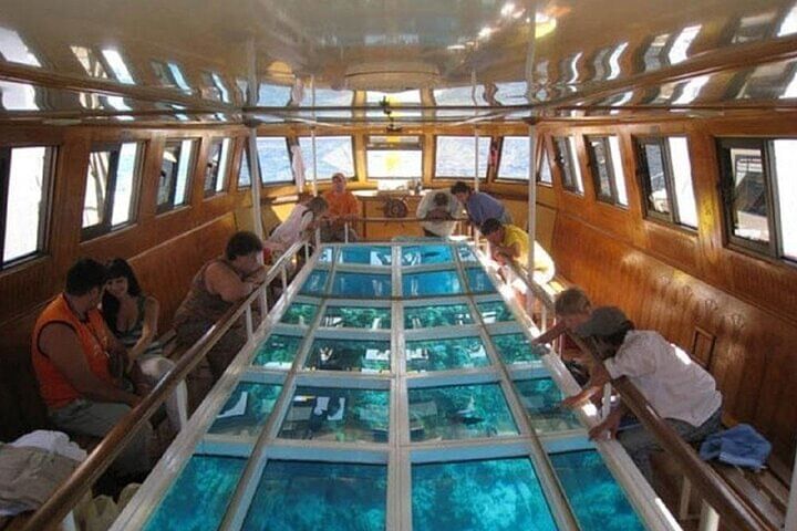 Hotel pick up & Drop off Air Conditioned Vehicle Professional Guide Glass boat Sea Trip relaxation Enjoy watching the redsea treasure by panoramic view Fly by Parasailing All safety equipment Water