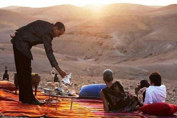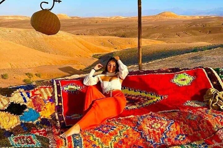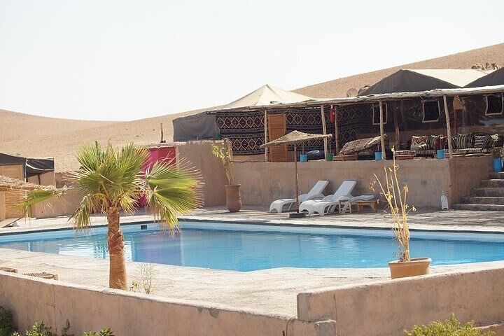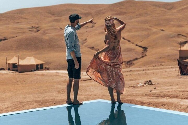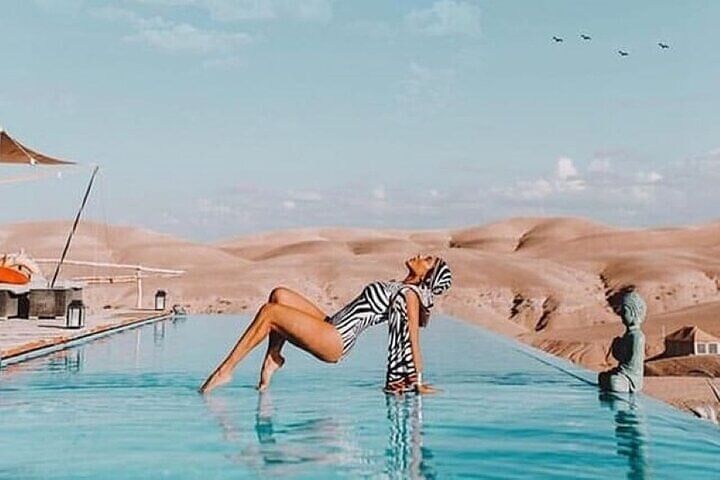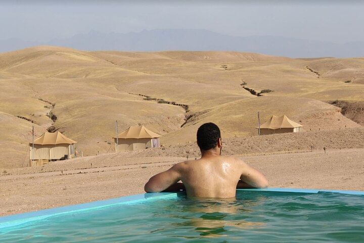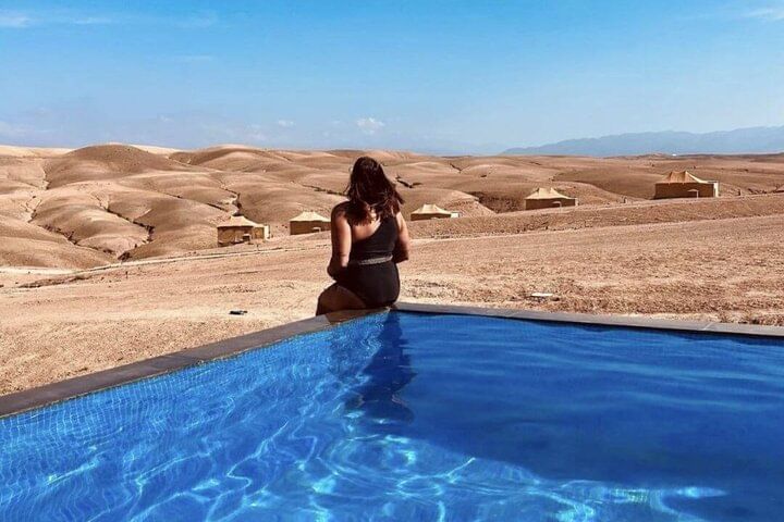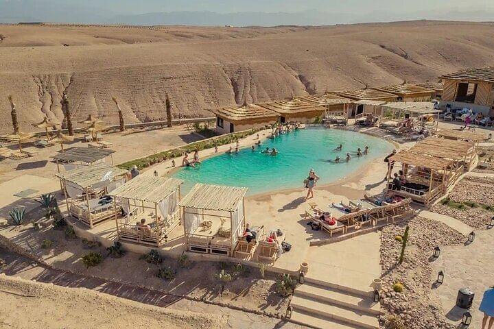 Leave the hustle and bustle of Marrakech behind for a rejuvenating day trip to the Agafay Desert. Take a refreshing swim in a pool with breathtaking desert views, indulge in a delicious lunch, and soak in the serenity of this desert oasis.
