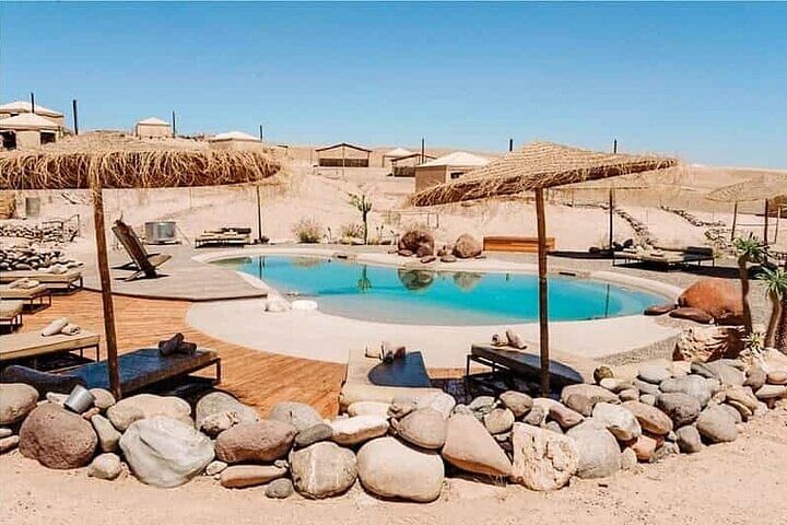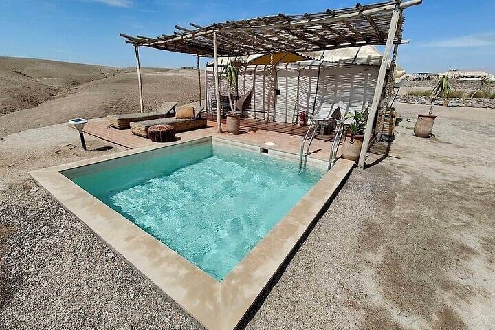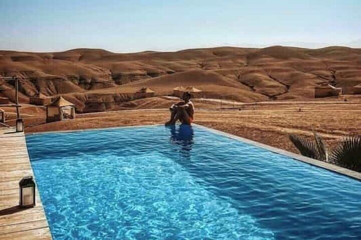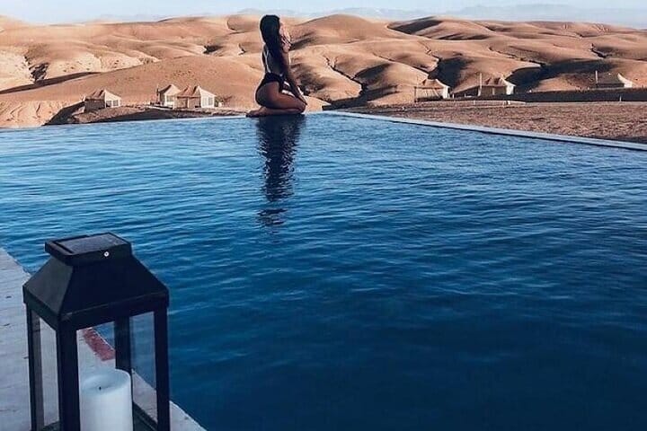 Unlike typical Marrakech excursions, this experience offers a unique blend of relaxation, culture, and natural beauty in one unforgettable setting. Where else can you swim in a tranquil desert pool with sweeping views of the Atlas Mountains, enjoy a freshly prepared traditional Moroccan lunch, and take in the striking landscape of the Agafay Desert—all in a single day? Whether you're looking to unwind in peace or explore a quieter side of Morocco, this flexible getaway suits couples, families, and solo travelers alike. With its serene atmosphere, authentic flavors, and immersive surroundings, this journey is more than just a day trip—it’s a refreshing escape into a desert oasis just outside Marrakech.