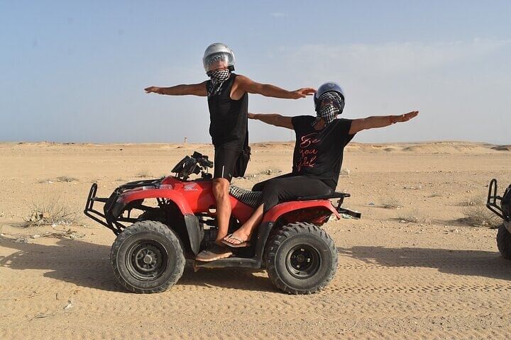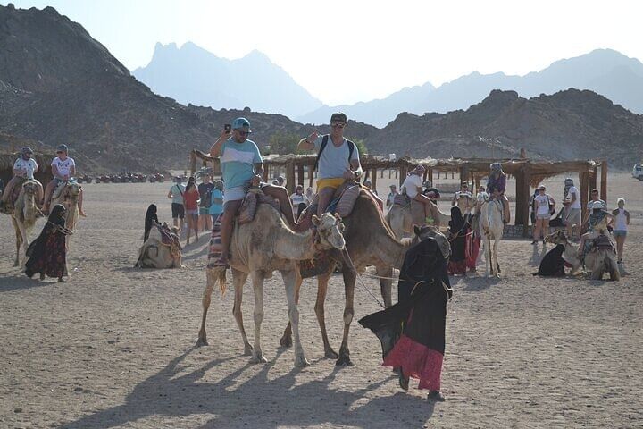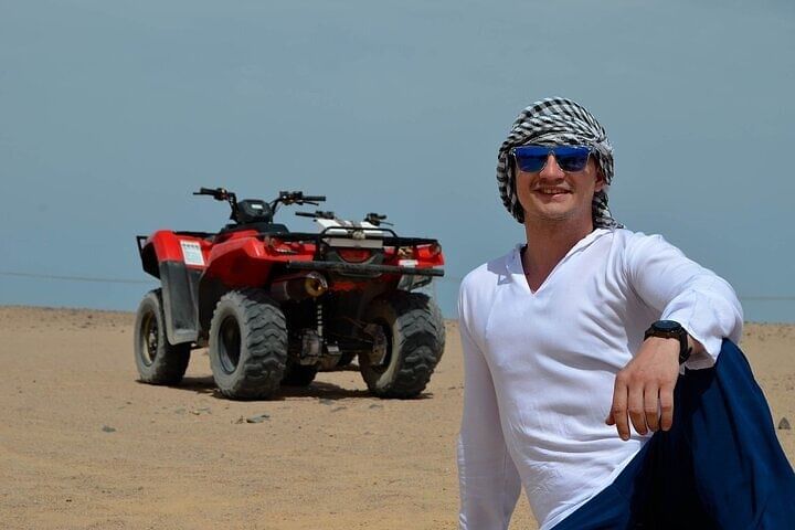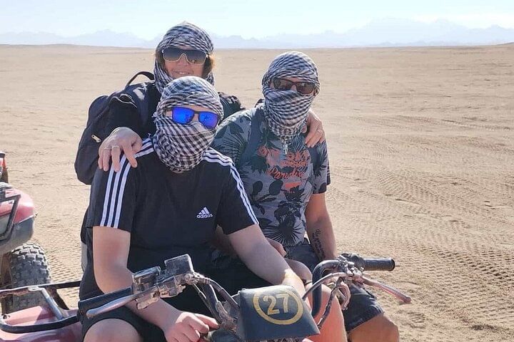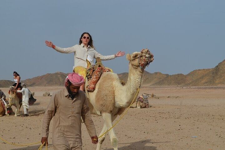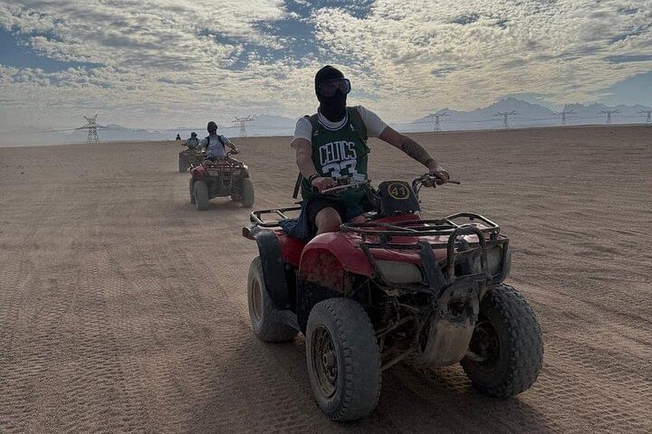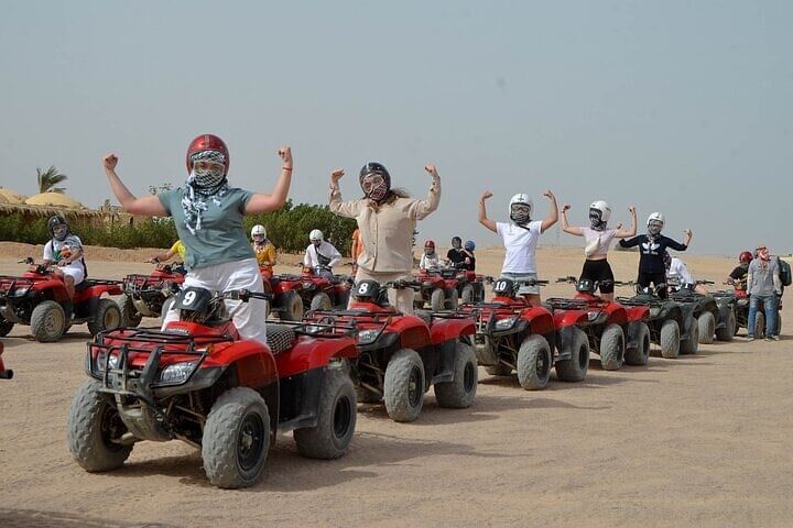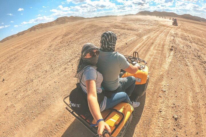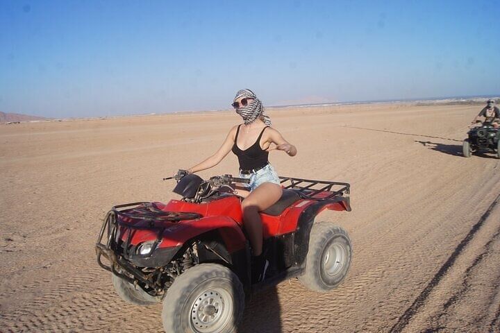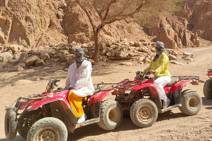 This experience stands out for its seamless blend of high-adrenaline quad biking, authentic Bedouin culture, and breathtaking desert landscapes—all in one unforgettable adventure. Instead of simply admiring the scenery, you’ll take control of your own quad bike and carve your path across real sand dunes and rugged mountain trails under expert guidance, feeling a rare sense of freedom that few resort activities can match. Then slow down the pace as you visit a traditional Bedouin village, where you’ll sip aromatic tea, enjoy a camel ride, and connect with a culture that’s been part of the Sinai for generations. The stop at Echo Valley adds a magical touch—call out and hear your voice dance between the canyon walls, surrounded by the vast desert silence. The final ride back across the glowing dunes delivers one last burst of excitement, leaving you with lasting memories of speed, serenity, and genuine connection to the desert.