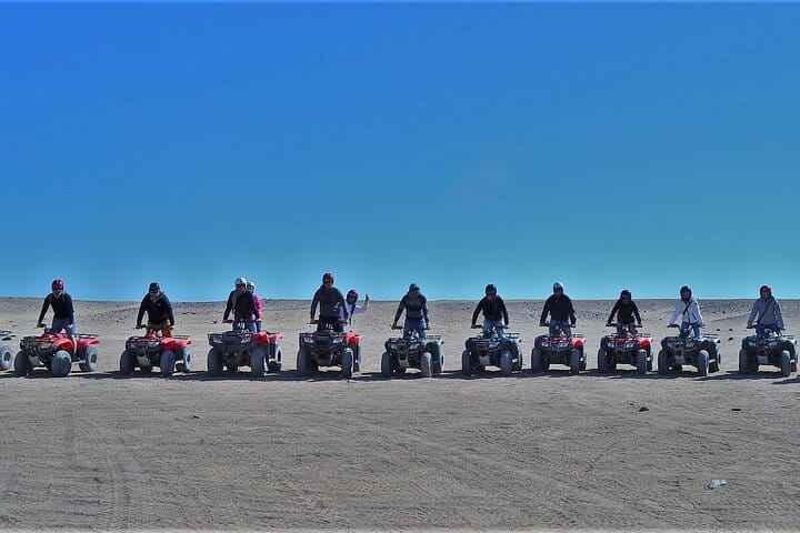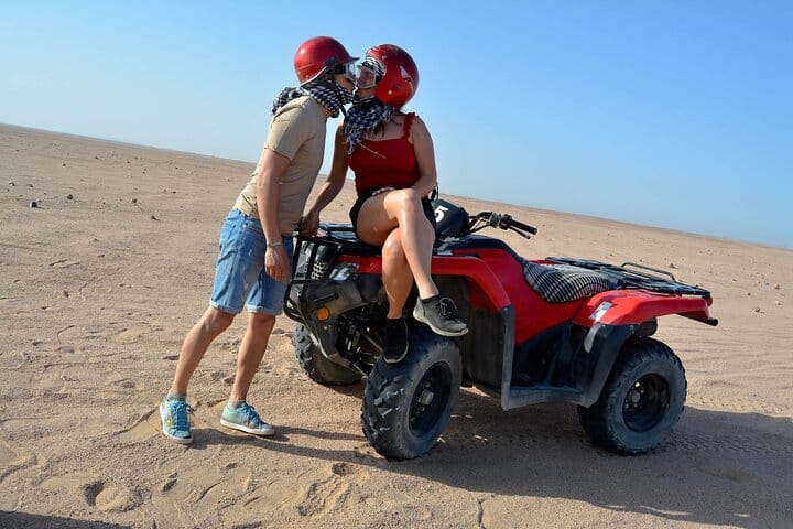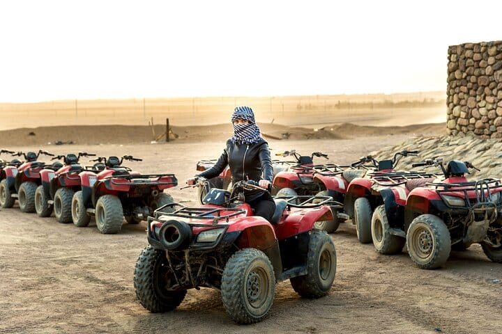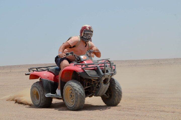 Get ready for the adventure of a lifetime with the ATV Quad Super Safari with Sunset, Camel Ride & Dinner – Marsa Alam. Take control of your quad bike and race across the vast Sahara, feeling the thrill of freedom and speed on the open dunes. Discover the charm of a Bedouin village, where local traditions and culture come alive. After a relaxing camel ride, watch the sunset transform the desert into a sea of colors. As night falls, enjoy a BBQ dinner under the sparkling desert sky and experience an authentic Bedouin show filled with music, dance, and mesmerizing performances. This is the ultimate Marsa Alam experience — combining excitement, culture, and unforgettable moments.