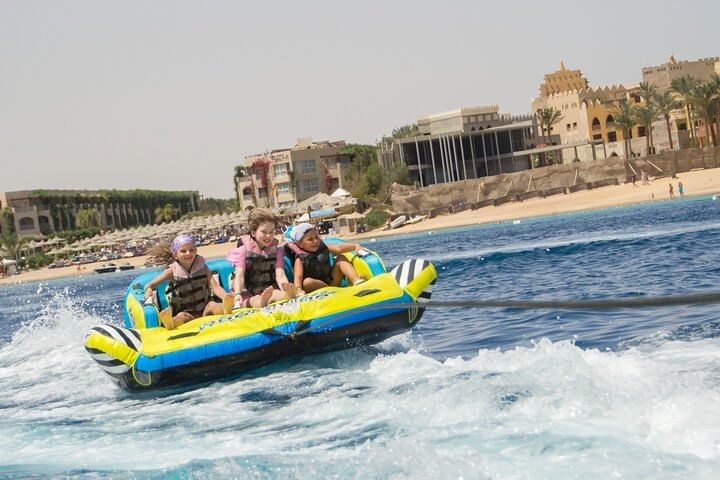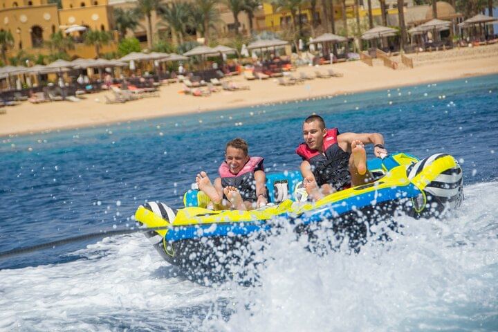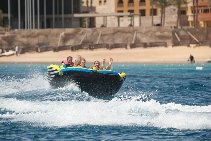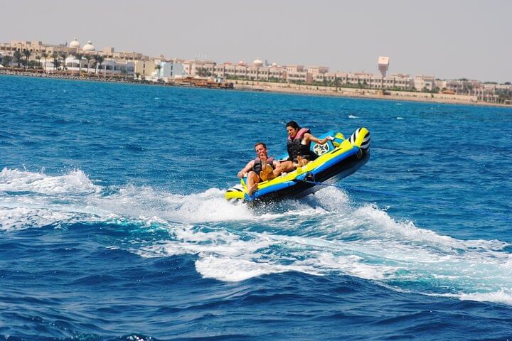 Experience the perfect blend of excitement and scenic beauty with a banana boat ride followed by an exhilarating Quadra boat trip. This combo tour offers twice the fun on the Red Sea, making it a must-do for thrill-seekers and nature lovers alike. Safe, easy, and unforgettable—your ideal Hurghada water adventure!