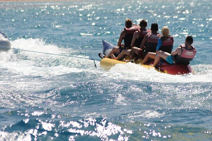 Private Hotel pickup and drop-off in air conditioned vehicle Up-to 10 minutes of Banana Boat Up-to 10 minutes of Quadra Professional instructor All necessary and Safety equipment