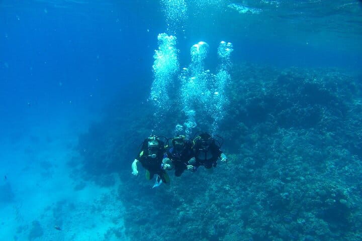 Discover the captivating underwater world of Marsa Mubarak on this 8-hour adventure. Suitable for all skill levels, this trip includes shallow dive sites perfect for beginners as well as deeper areas and walls for more experienced divers. During your journey, enjoy a delicious lunch served onboard the boat. Join us for the Beginner's Scuba Diving Adventure: Two Dives & Lunch - Marsa Alam and make the most of your day!