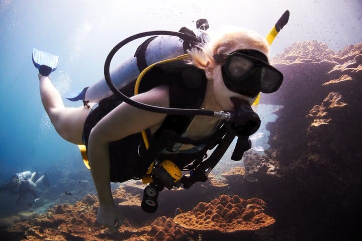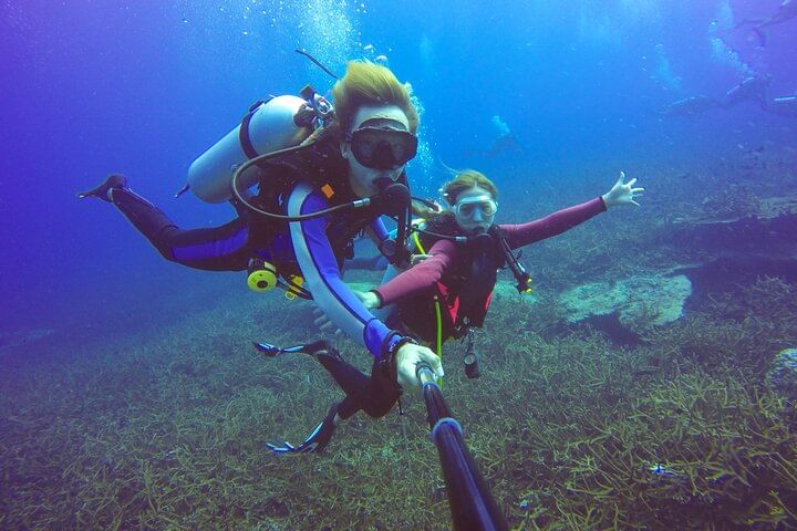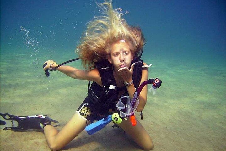 Hotel Pick up & Drop off by Air-conditioned vehicle 8 Hours Boat Trip & Use of SCUBA equipment Professional Padi Instructor Beginner's Scuba Diving Adventure: Two Dives Two Scuba Diving stops with equipment Water & Coffee and/or Tea & Soda/Pop Lunch