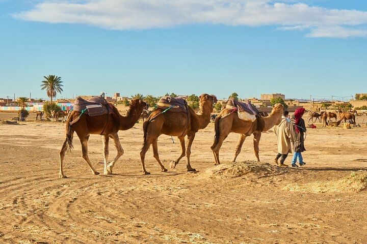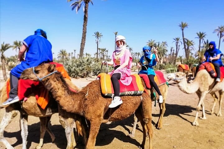 Hotel pickup and drop-off by air conditioned vehicle Visit Palmeraie grove Ride Camel in Palmeraie All safety equipment Moroccan tea Water