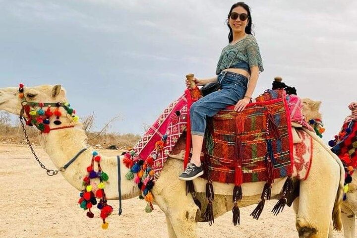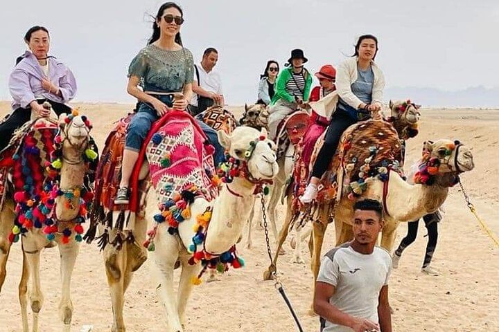Enjoy an unforgettable camel-riding adventure across Egypt’s golden sands, where history, culture, and nature come together. Follow the ancient paths once traveled by traders and nomads, discovering the deep bond between people and camels that has shaped desert life for centuries. Ride gentle, handpicked camels guided by professional trainers who ensure your comfort, safety, and enjoyment every step of the way. Perfect for families, beginners, and culture lovers, this one-hour experience offers an authentic glimpse into Egypt’s timeless traditions. As the sun sets and the dunes glow in warm colors, feel the tranquil rhythm of the desert and capture stunning photos that reflect the true spirit of Egypt. This authentic camel ride promises a perfect mix of adventure, heritage, and breathtaking scenery — a must-do experience for anyone visiting Egypt.