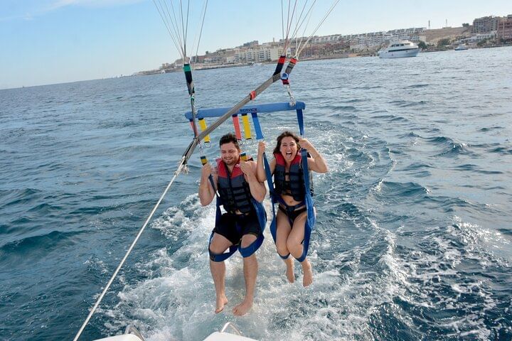 What makes this parasailing adventure truly unforgettable? It's the exhilarating feeling of soaring up to 50 meters above the crystal-clear Red Sea, where endless panoramic views meet total freedom and adrenaline in a single, breathtaking moment.