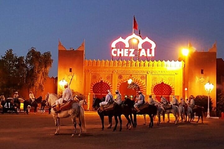 - Be captivated by the thrilling Fantasia show - Relish the rich flavors of authentic Moroccan cuisine - Soak in the lively ambiance of Chez Ali - Experience the heart of Moroccan culture - Enjoy an unforgettable evening of entertainment and dining
