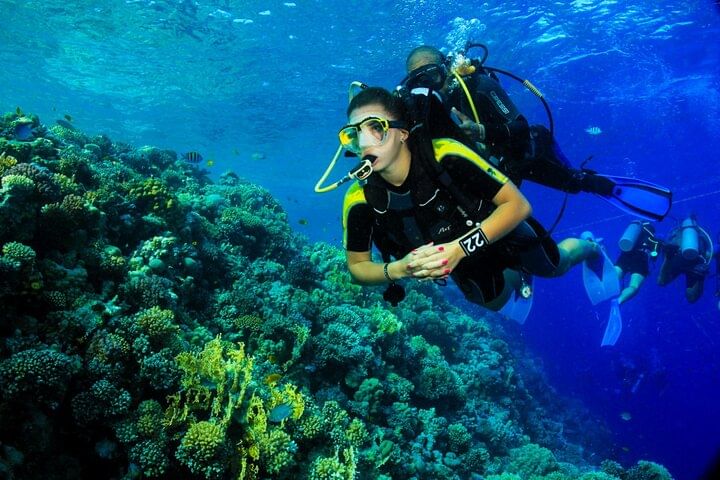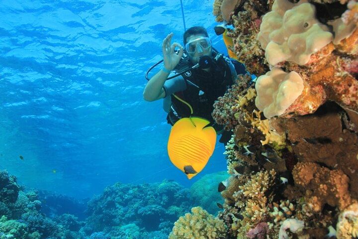Led by professional instructors, you'll visit multiple dive and snorkel sites, each offering unique underwater landscapes and hidden gems of the Red Sea. Between stops, enjoy a freshly prepared lunch onboard and take in the breathtaking sea views as you relax and recharge.