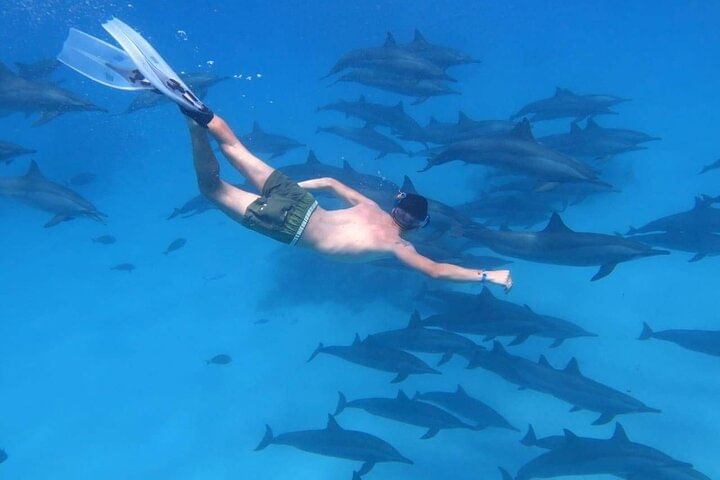 Your journey starts with a scenic boat ride, taking about two to two and a half hours as you cruise toward the captivating Dolphin House. Once there, you'll dive into your first snorkeling session, guided by an experienced professional through the reef’s crystal waters—often graced by pods of curious dolphins.