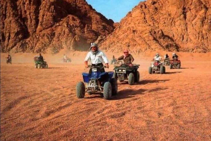 Hotel Pick up & Drop off ATV Quad Safari Tour Ride Camel Ride and Professional Guide Visit & Enjoy the Bedouin Village Egyptian Oriental Show Dinner & Bedouin Tea & Soda/Pop