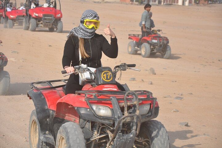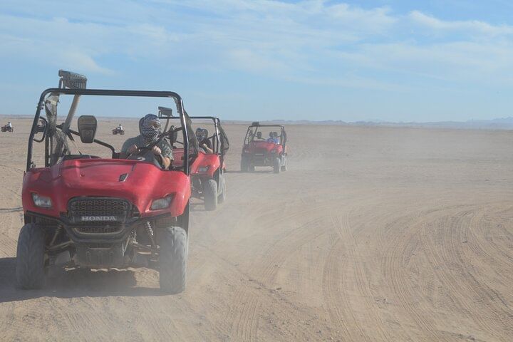 Step beyond the ordinary with a fully guided desert safari that blends adrenaline-fueled thrills with real Bedouin hospitality. This all-inclusive experience goes far beyond basic ATV rentals—offering hotel pickup and drop-off, expert safety training, and not just one, but two off-road adventures: a quad bike ride and a high-energy dune buggy session through Egypt’s breathtaking Eastern Desert.
