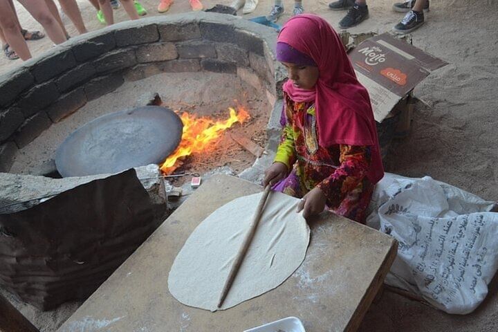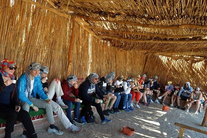 Take a break at a traditional Bedouin camp, where you’ll sip herbal tea, relax, and experience genuine Bedouin hospitality. As the sun sets, enjoy a delicious local dinner under the stars before riding back and returning to your hotel.