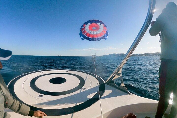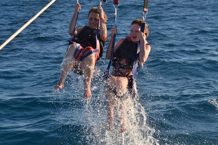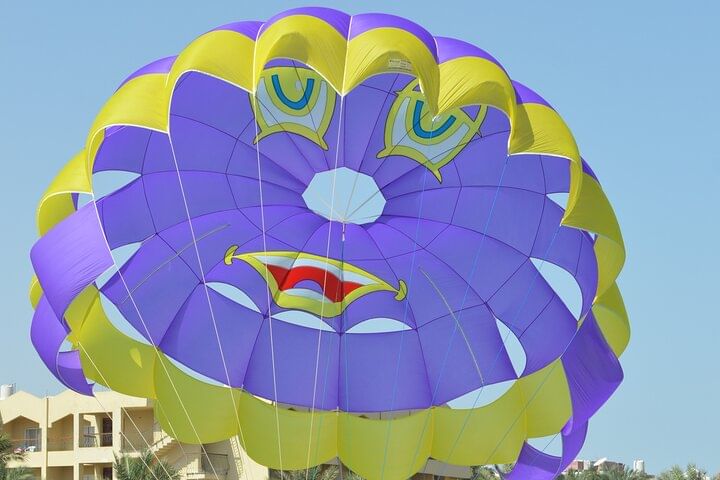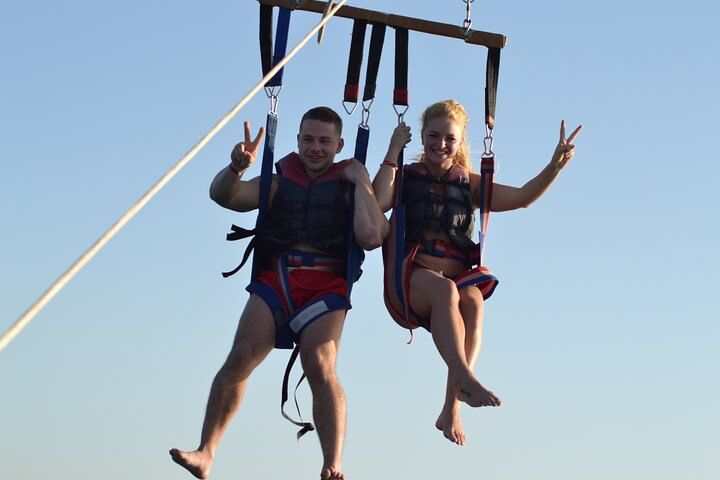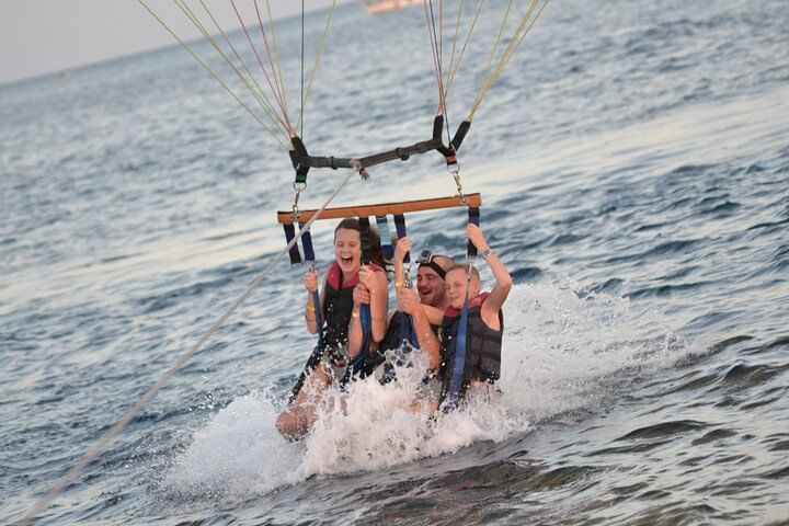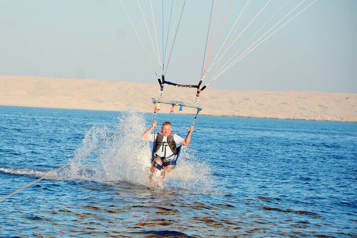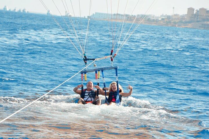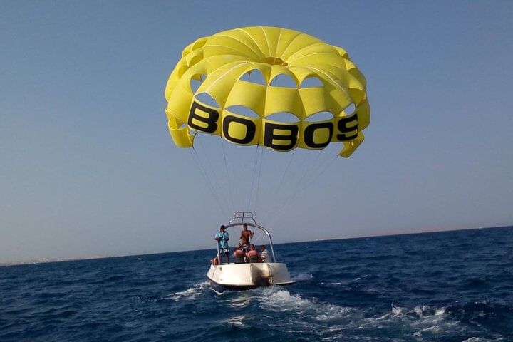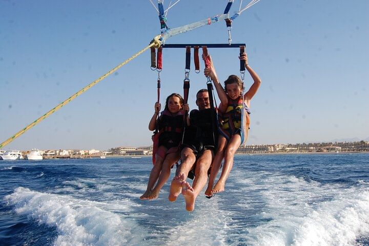 Experience an exhilarating parasailing adventure in Sharm El Sheikh with private transportation. Soar high above the Red Sea, enjoying stunning views as you float effortlessly, all while benefiting from seamless and personalized transport to and from your
