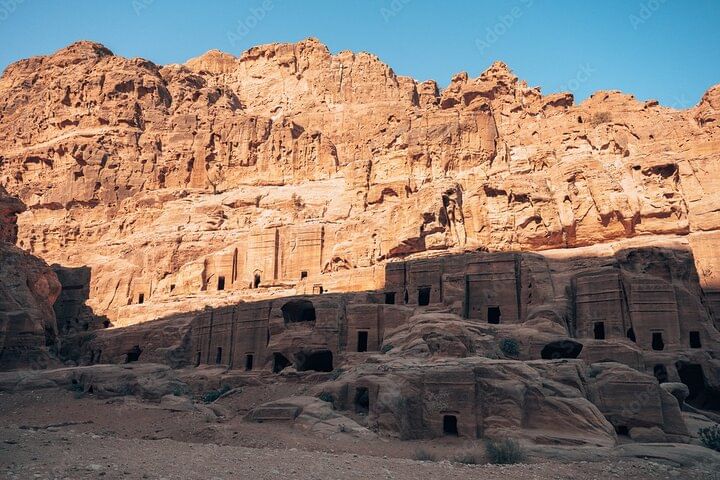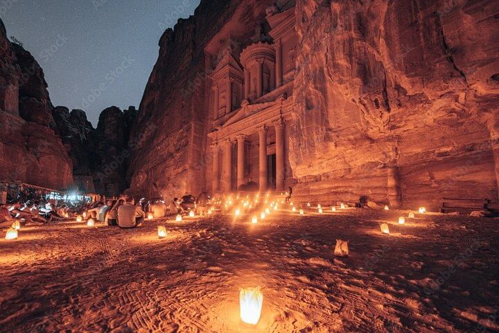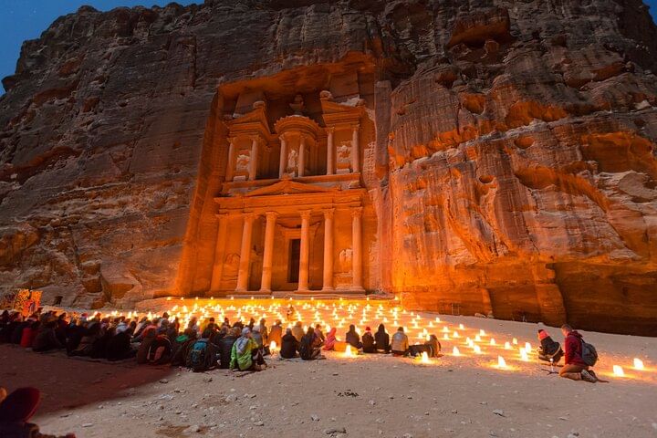 Wander through its dramatic sandstone gorge and marvel at the rock-cut architecture, including the iconic Treasury, Roman Theater, and royal tombs. After immersing yourself in Petra’s rich history, enjoy a delicious lunch at a local restaurant featuring traditional Jordanian cuisine.
