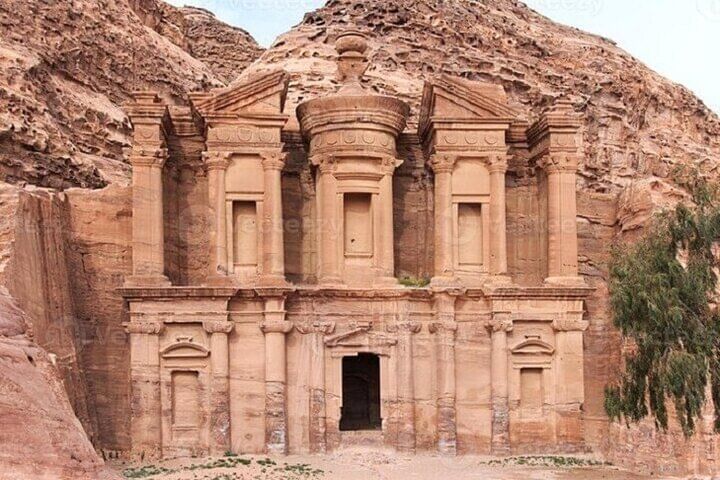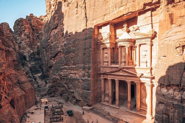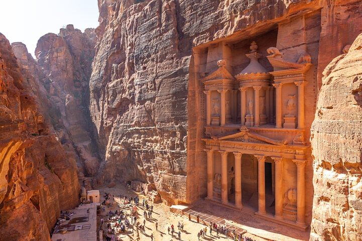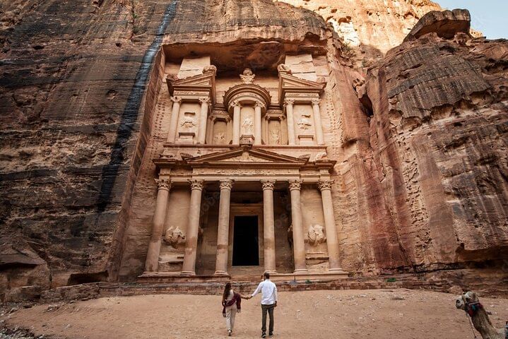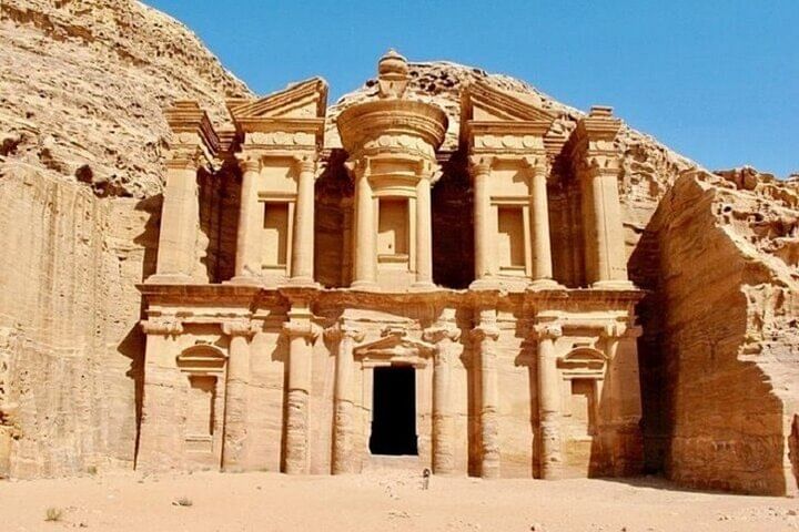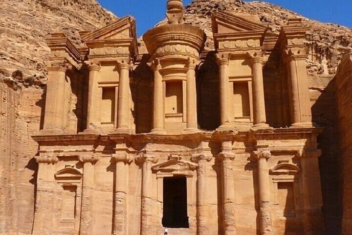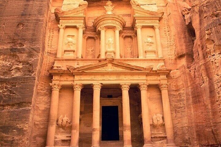 Take a captivating journey on the Petra Temple Tour with Ferry & Lunch from Sharm El Sheikh. Your day begins with a scenic ferry ride across the Red Sea to Jordan, where you'll explore the ancient city of Petra—one of the New Seven Wonders of the World.
