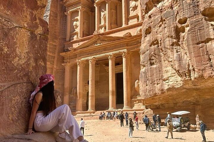 Hotel Pick up & Drop off Air-conditioned vehicle Professional Guide Visit The Ancient City of Petra Visit The Roman Theater Visit The Temple and Treasures of the Citadel Lunch