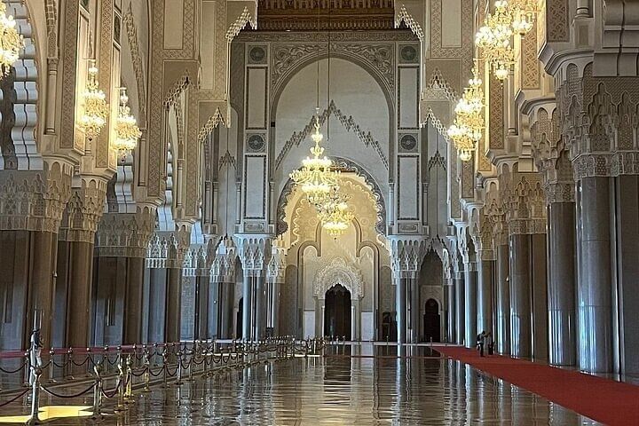 Start your journey at the magnificent Hassan II Mosque, an architectural masterpiece set against the Atlantic Ocean. Then, stroll through the lively lanes of the Old Medina, where traditional Moroccan culture thrives. Experience Casablanca’s unique blend of influences by visiting both the grand mosque and a sleek modern church, highlighting the city’s diverse spiritual landscape.