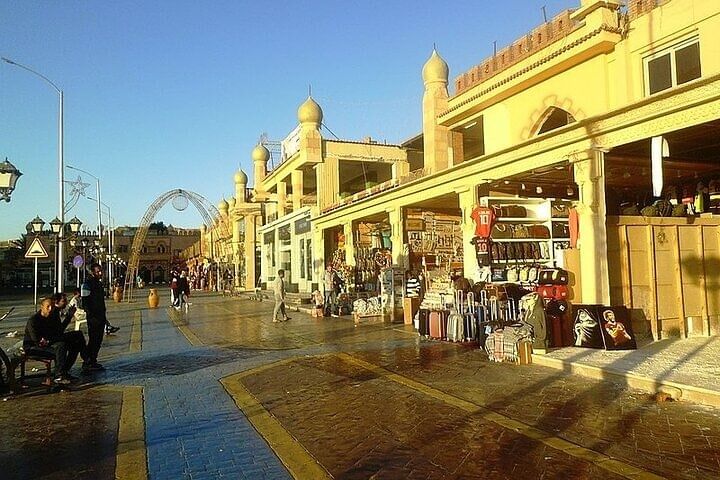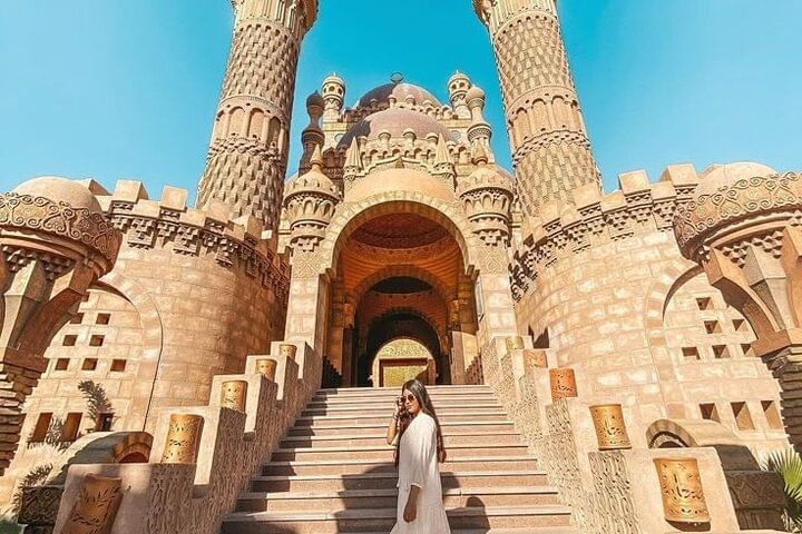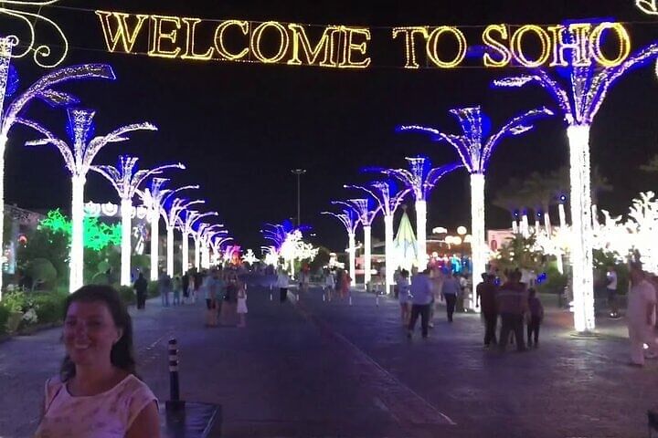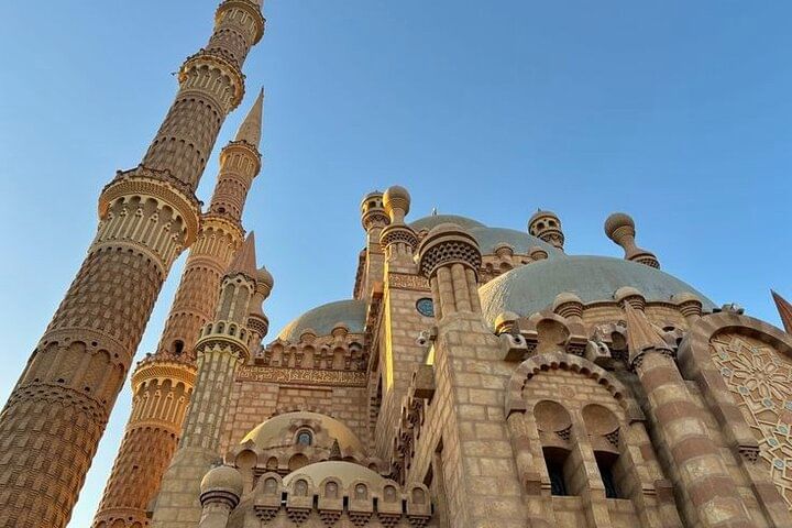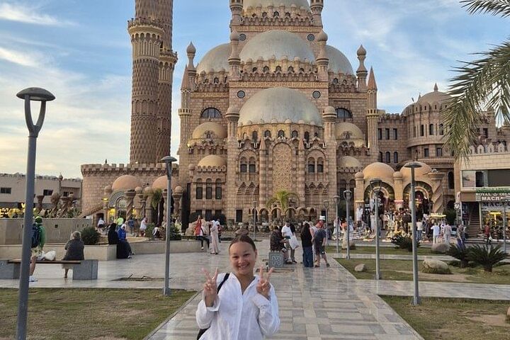 Discover the best of Sharm El Sheikh on this unforgettable 3-hour private city tour, blending culture, architecture, and modern life. Begin at the magnificent Al Sahaba Mosque, a masterpiece of Islamic design in the heart of the Old Town. Admire its grand domes, golden details, and minarets as your guide shares its fascinating history and spiritual meaning. Continue to the lively SOHO Square, where modern Sharm shines with dancing fountains, chic cafés, boutiques, and live entertainment. Take time to stroll, take photos, or enjoy a refreshing local drink. End your journey at the Old Market, a bustling maze filled with souvenirs, spices, jewelry, and authentic Egyptian crafts. Meet friendly vendors, taste local snacks, and soak in the vibrant atmosphere. Blending tradition, modern charm, and local culture, this private tour is the perfect way to experience the true spirit of Sharm El Sheikh in just a few magical hours.
