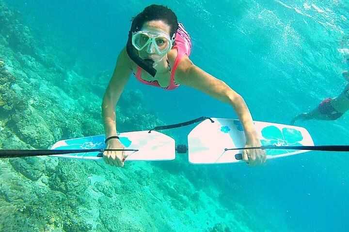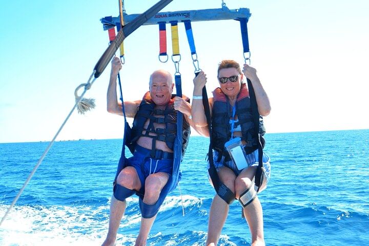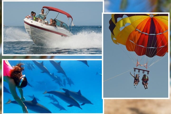 Join us for the ultimate adventure with our private 4-hour speedboat excursion to Dolphin House, featuring an exciting parasailing experience. Enjoy hassle-free round-trip transfers, snorkeling gear, and a selection of refreshing snacks and soft drinks