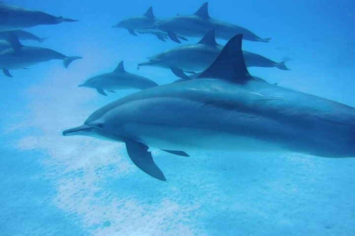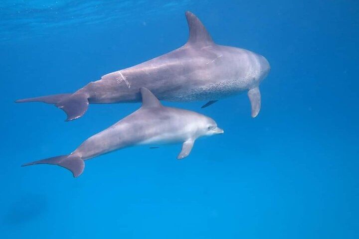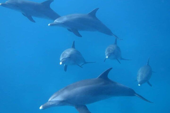 Join an up to 4-hour semi-private speedboat trip in Hurghada to swim with dolphins, including transfers for your convenience. Delight in an intimate encounter with these magnificent creatures while exploring the stunning Red Sea