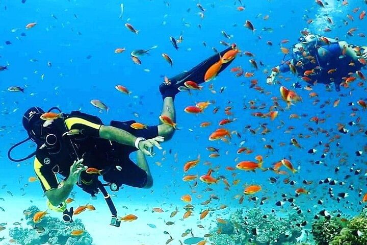 Set off on an exhilarating speedboat adventure to the stunning Hula Hula Island in Hurghada! Discover the magic of the Red Sea with two unforgettable diving stops, giving you the chance to explore vibrant marine life and crystal-clear underwater landscapes.
