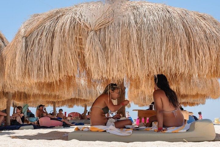 Set sail on a private speedboat to Magawish Island in Hurghada for an unforgettable adventure! Enjoy thrilling water sports like snorkeling and take to the skies with parasailing.