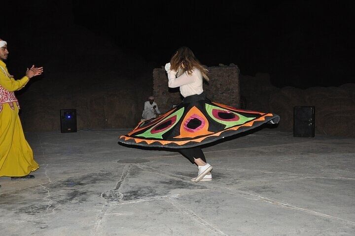 The adventure continues with a deep dive into Bedouin culture. Visit a local Bedouin village, sip on traditional tea, explore a Bedouin pharmacy, and enjoy a flavorful barbecue dinner under the stars. As night falls, the desert comes alive with vibrant Tanoura and belly dance performances, offering a colorful glimpse into Egypt’s timeless traditions.