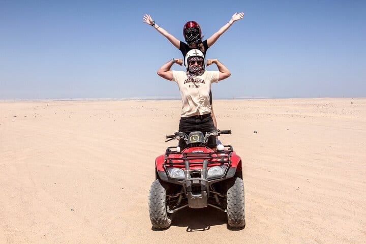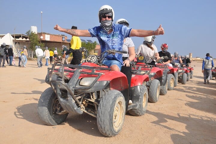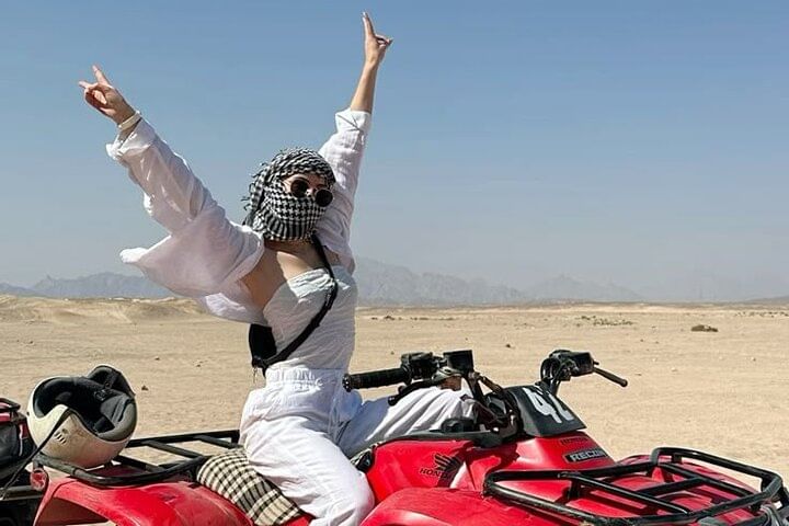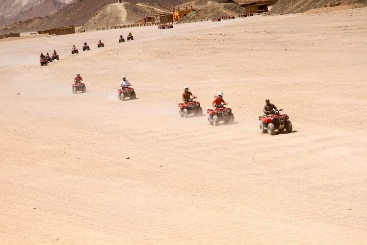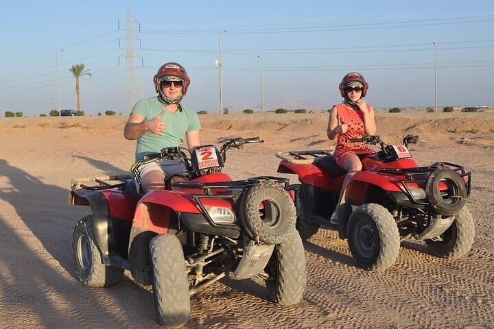 This experience is unique because it offers a multi-layered adventure that combines high-energy desert exploration with authentic cultural immersion—all in one day. The thrilling quad ride through the vast Sinai desert contrasts beautifully with the serene pace of a traditional camel trek, giving you two completely different ways to experience the landscape. What truly sets it apart is the evening finale: a delicious dinner paired with live traditional entertainment, allowing you to not just explore the desert, but also connect with its local heritage through music, dance, and food. It’s a complete desert journey—action-packed, culturally rich, and perfectly balanced.