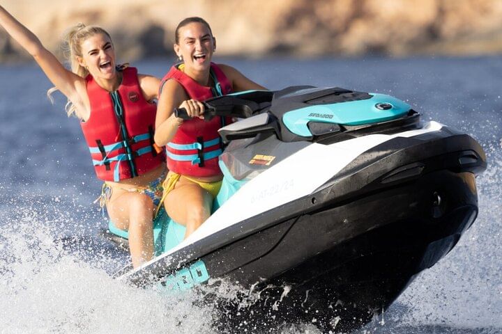 Hotel pick up and Hotel drop off by air conditioned vehicle Jet Skiing Up To 15 minutes Professional assistant Helmet All safety equipment All Fees and Taxes