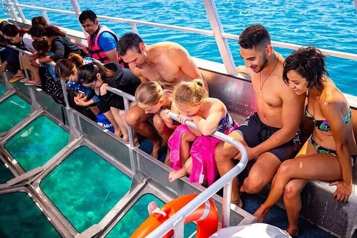Then, slow things down and step aboard a glass-bottom boat for a relaxing cruise over vibrant coral reefs and tropical marine life — all visible beneath your feet, no swimming required.