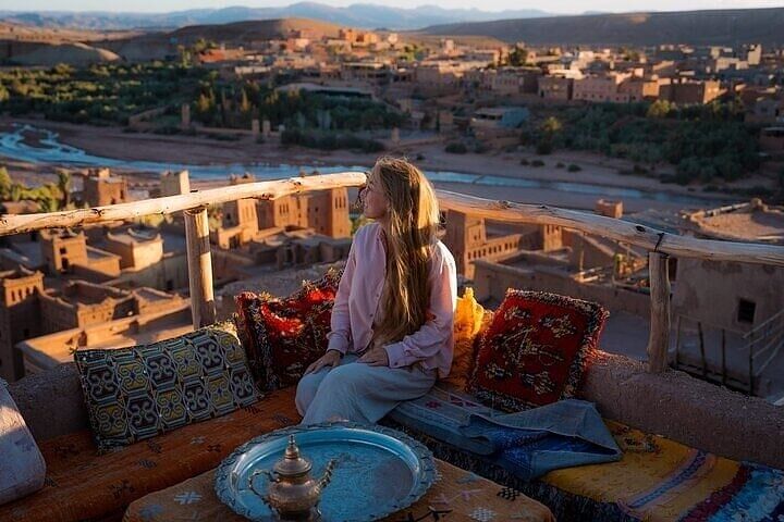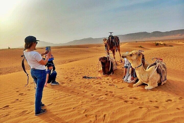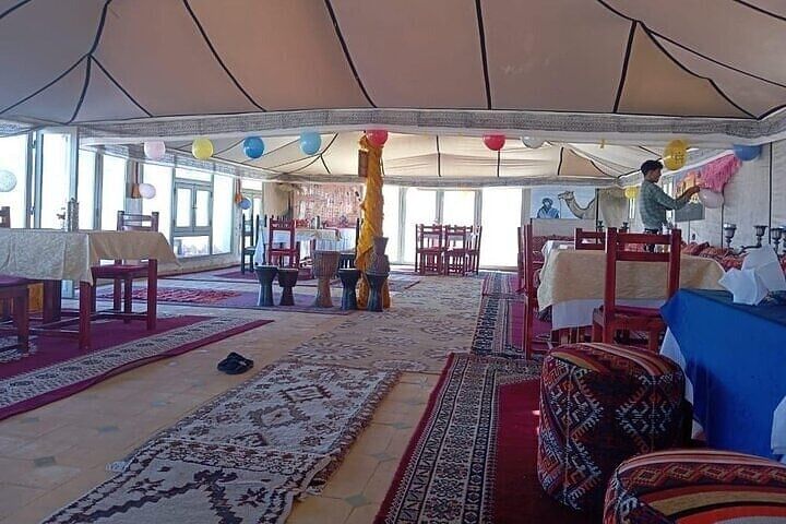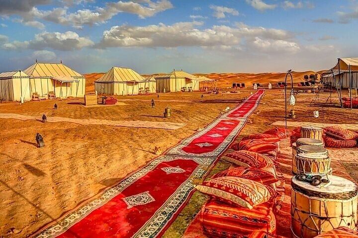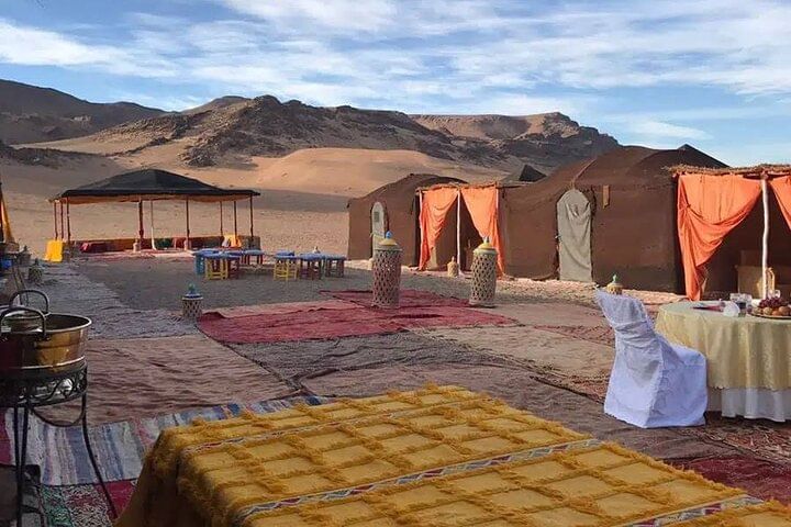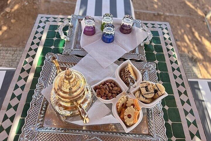 Arrival at luxury desert camp with traditional Berber mint tea welcome