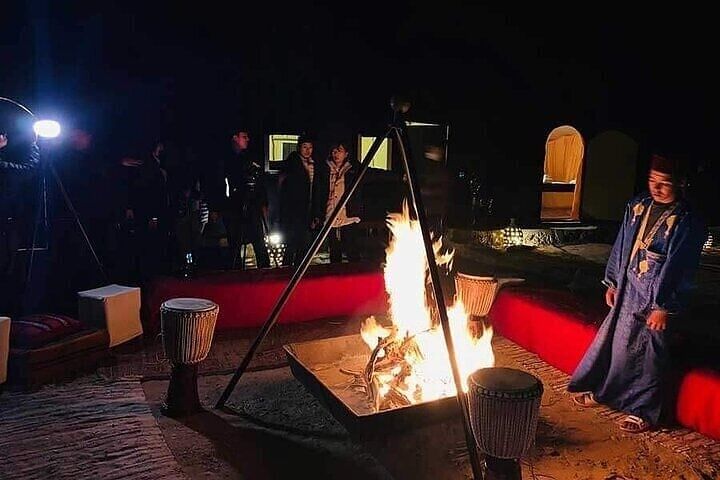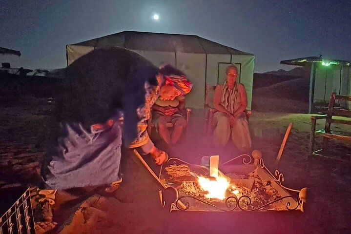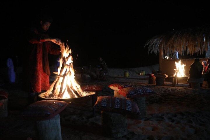 Dinner in a cozy Berber tent and stargazing by the campfire